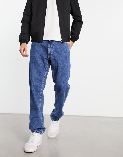 - Non-stretch denim: light-blue wash