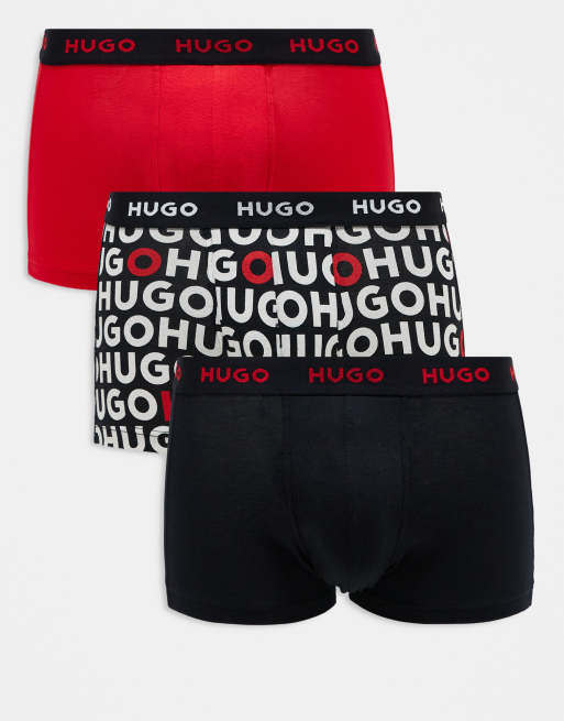 HUGO Bodywear 3 pack trunks in black, red and design print