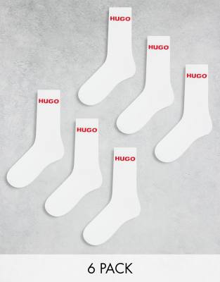 HUGO Bodywear 6 pack sporty ribbed socks in white with logo