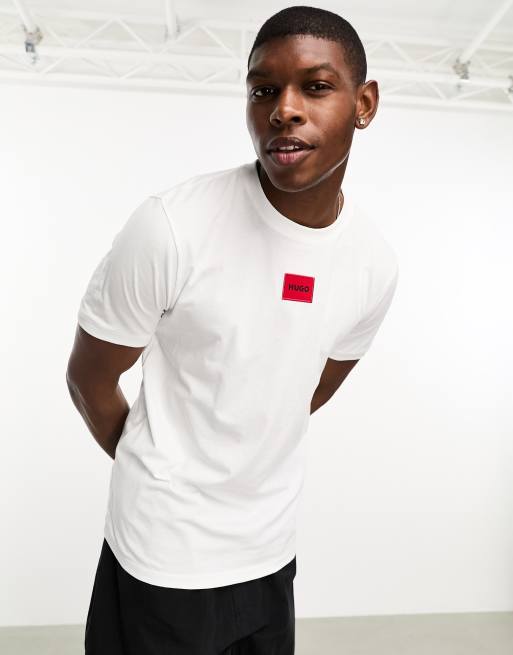 HUGO Diragolino boyfriend fit box logo t-shirt in white