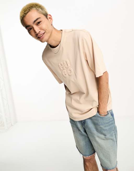 HUGO Dleek logo relaxed fit t-shirt in beige