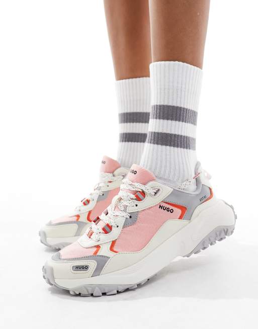 HUGO hybrid sneakers with logo in grey and light pink