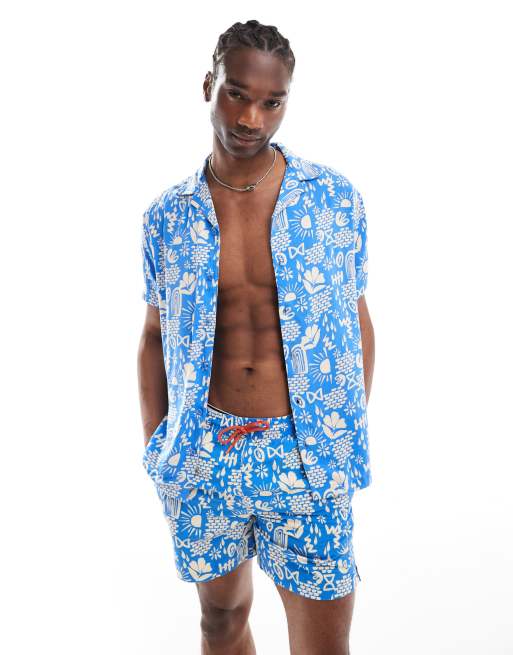 Hunky Trunks abstract print beach shirt in blue (part of a set)