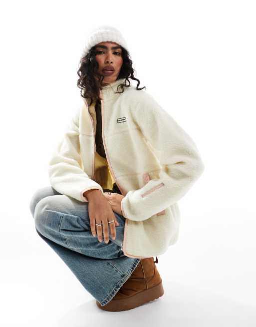 Hunter Milan sherpa jacket with contrast lining in beige