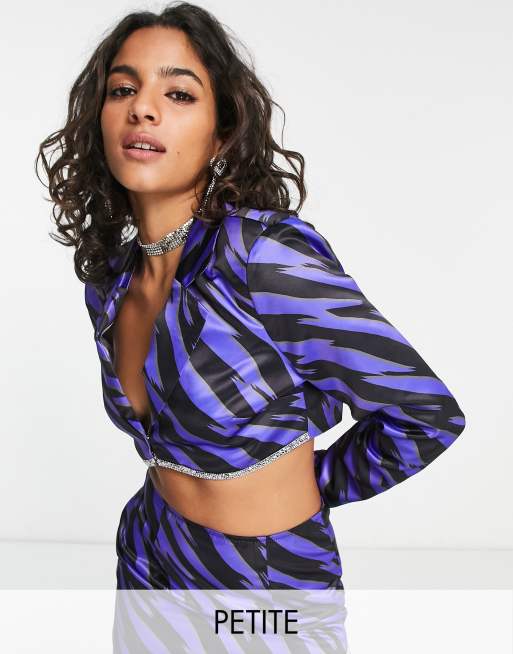 I Saw It First Petite cropped blazer with embellishment in zebra (part of a set)