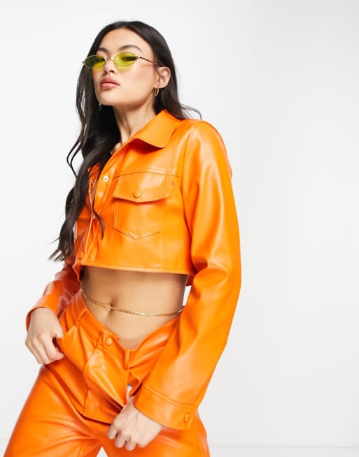 I Saw It First premium PU cropped utility jacket in orange