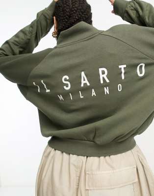 Il Sarto Plus bomber jacket with ruched sleeves in khaki (part of a set)