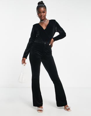 In The Style exclusive velvet fitted flare pants in black (part of a set)