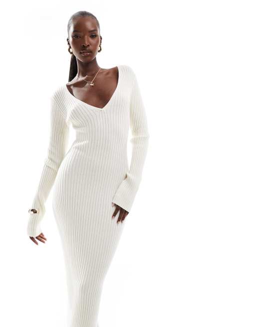 In The Style soft ribbed v neck maxi jumper dress in cream