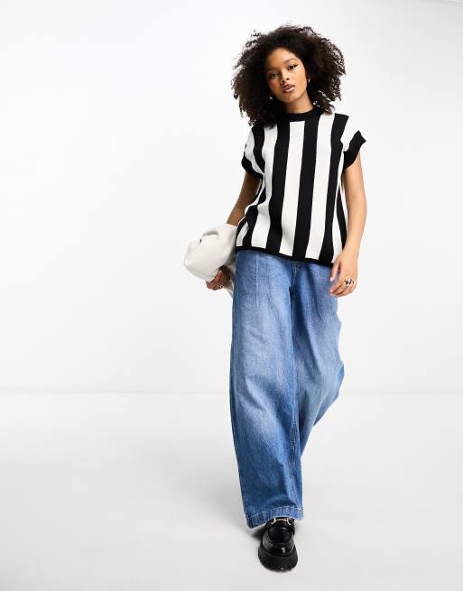 InWear Isabel knitted sleeveless striped top in black and white