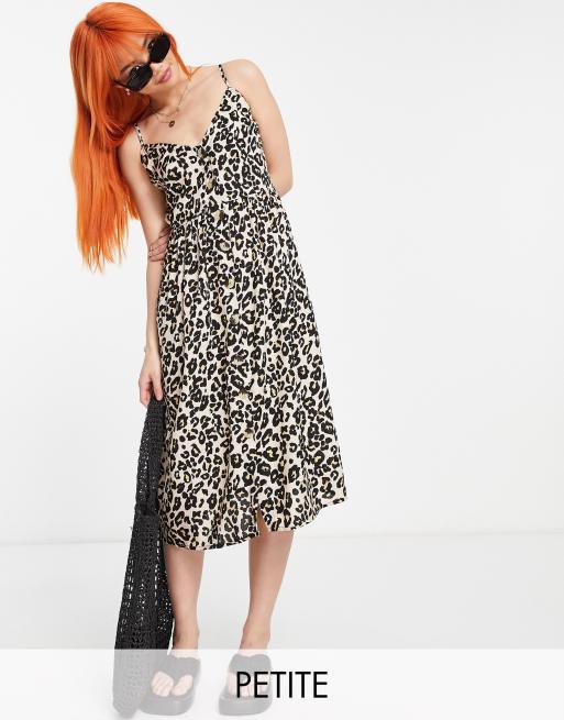 Influence Petite cotton poplin cami midi dress in leopard print