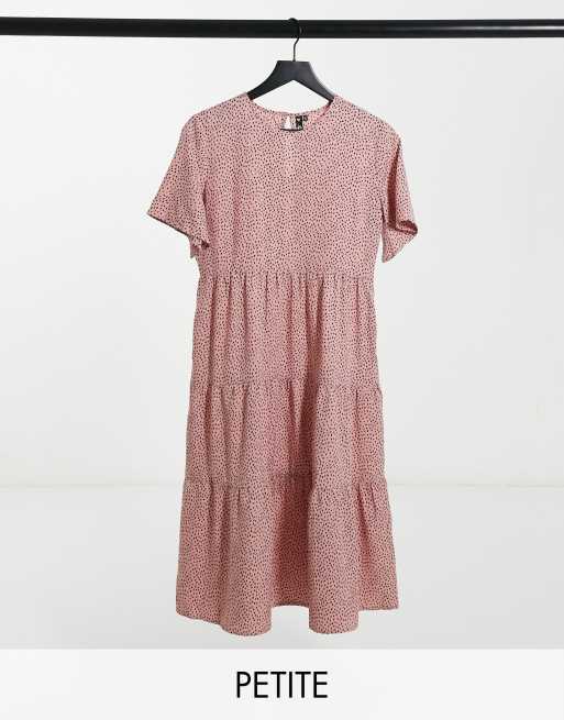 Influence Petite shirred tiered midi dress in dusky pink polka dot