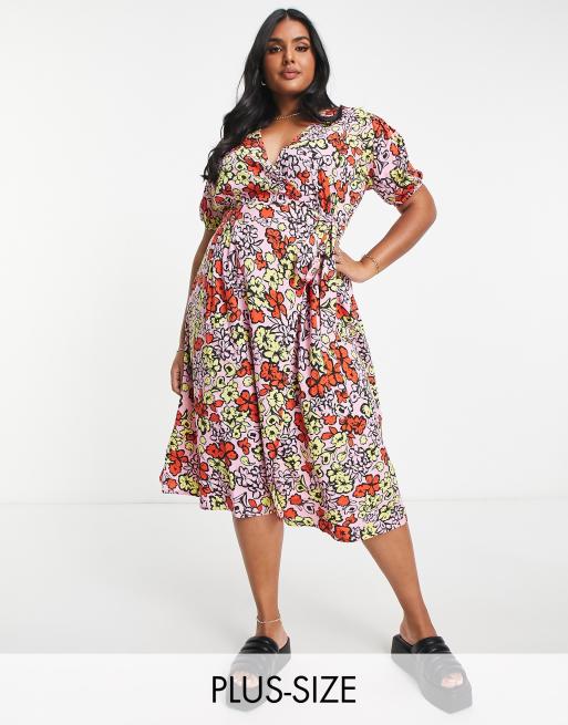 Influence Plus wrap front midi dress in bold floral print