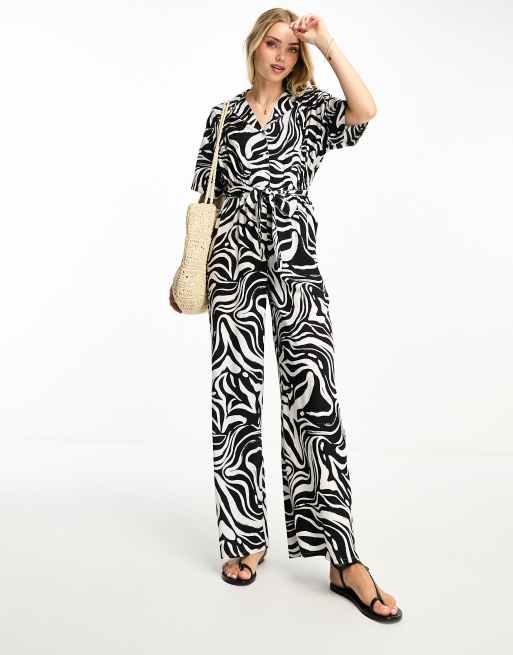 Influence revere collar jumpsuit in monochrome print