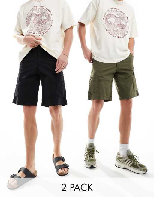 Jack & Jones 2 pack cargo shorts in black and khaki