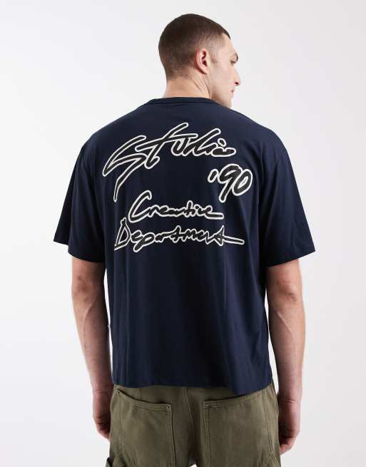 Jack & Jones boxy crop t-shirt with studio back print in navy