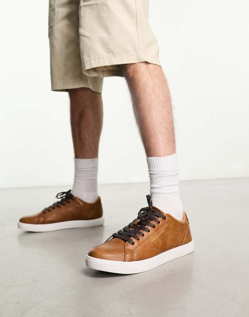 Jack & Jones faux leather sneakers in brown with gold logo