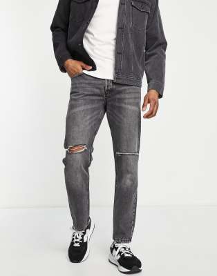 Jack & Jones Intelligence Mike straight fit jeans in washed black with knee rips