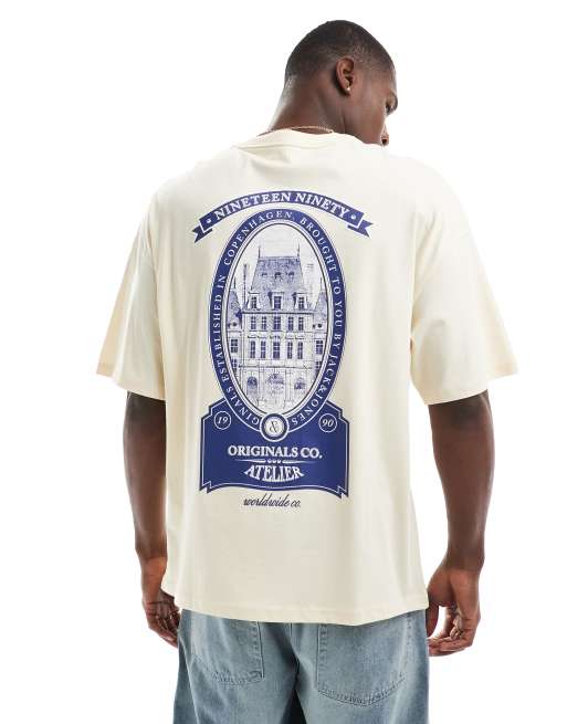 Jack & Jones oversized t-shirt with atelier back print in pale yellow