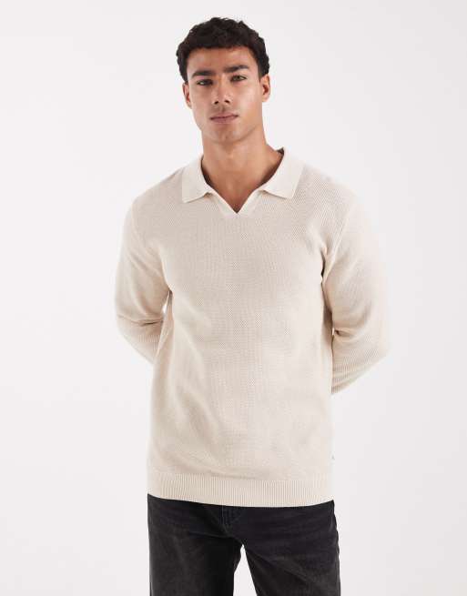Jack & Jones premium knitted long sleeve polo in silver lining