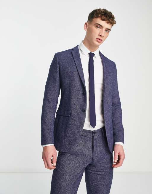 Jack & Jones Premium super slim fit tweed suit jacket in blue