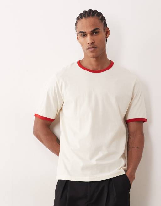 Jack & Jones ringer t-shirt in cream