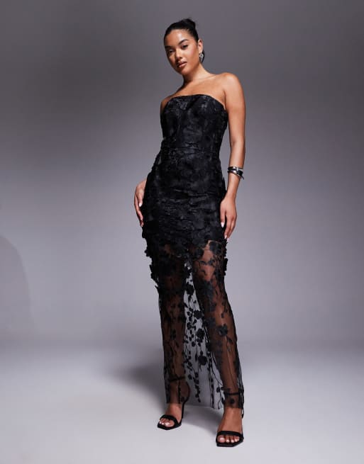Jarlo embroidered mesh tube midaxi dress in black