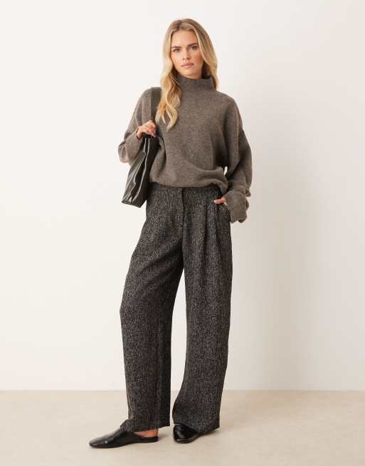 JDY Petite boucle wide leg pants in black