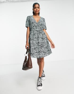 JDY Anetty wrap mini dress in black