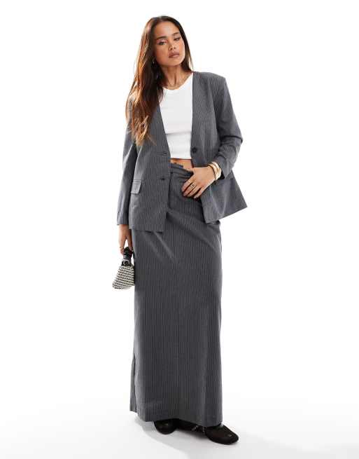 JDY column maxi pinstripe skirt in grey (part of a set)