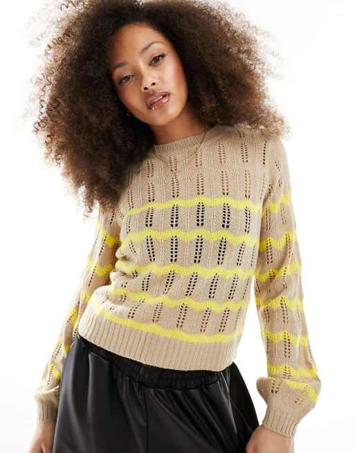 JDY lightweight pointelle jumper in beige & yellow
