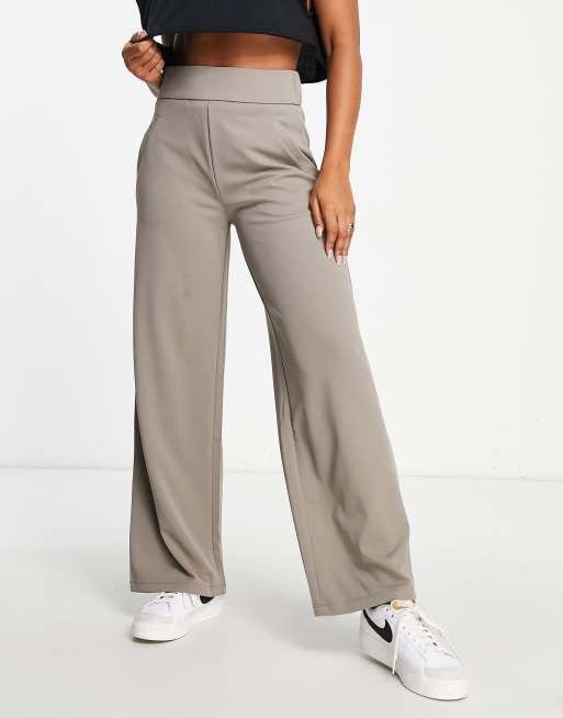 JDY wide leg tailored pants in mushroom