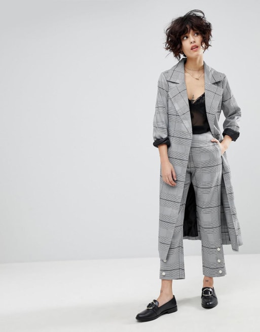 J.O.A Wrap Mac Jacket & Pants In Suit Check Co-Ord