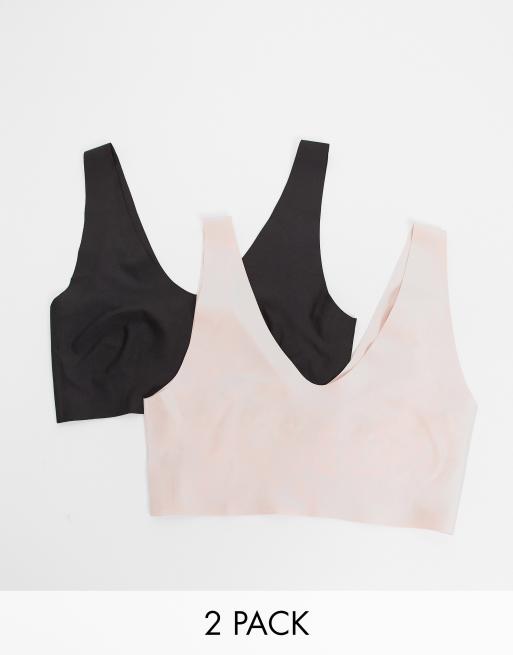 Jojoe 2 pack v neck bonded bralets in black and blush - MULTI