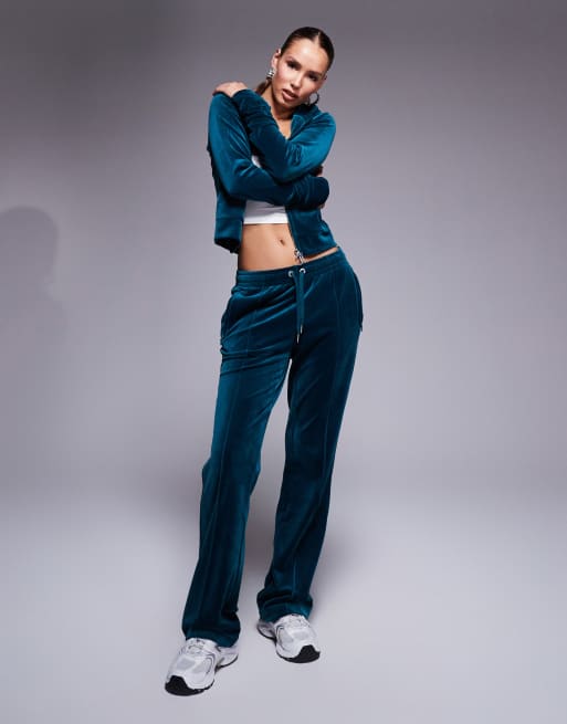 Juicy Couture velour straight leg trackies exclusive to ASOS in deep teal (part of a set)
