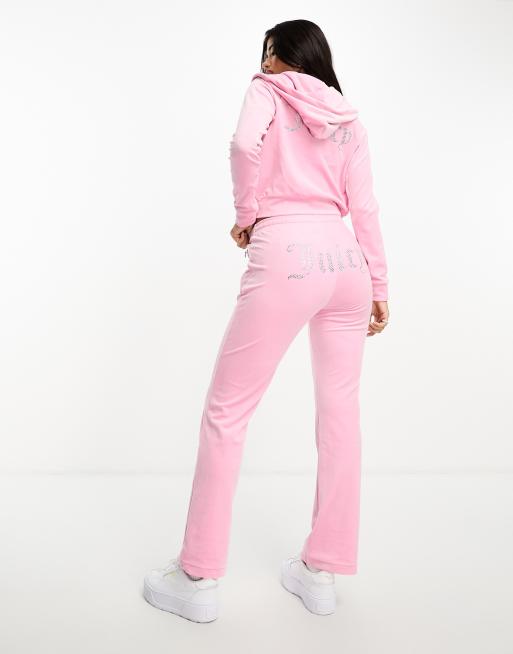 Juicy Couture velour straight leg trackies in pink (part of a set)