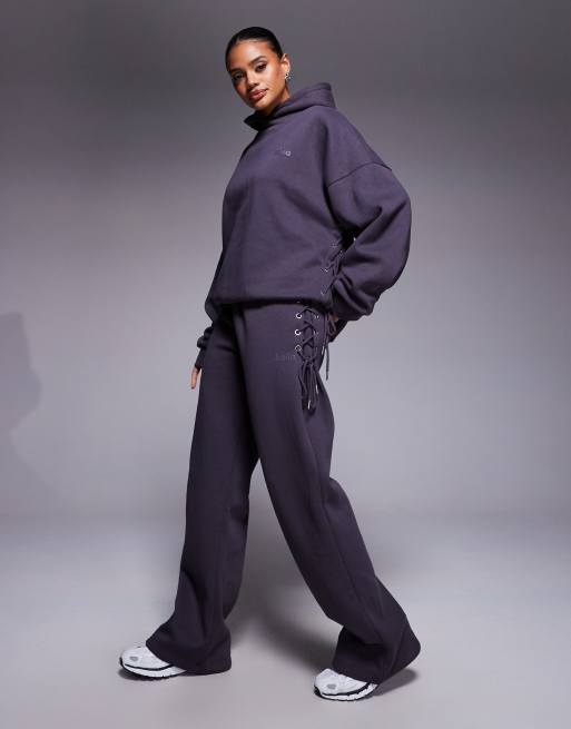 Kaiia cotton rich lace up detail wide leg trackies in charcoal (part of a set)
