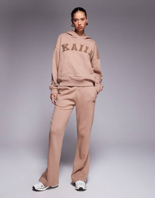Kaiia embroidered logo baby tee, hoodie and wide leg trackies set in espresso