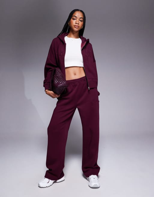 Kaiia embroidered logo zip through hoodie and wide leg trackies set in dark cherry