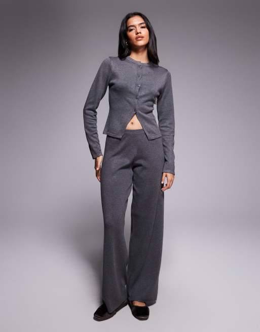 Kaiia exclusive button-through split front long sleeve cardigan and pants set dark grey