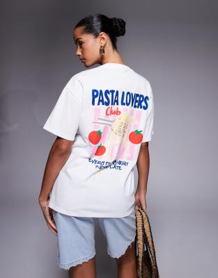Kaiia exclusive cotton Pasta Lovers Club back graphic oversized t-shirt in white