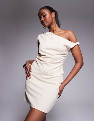 Kaiia exclusive linen look off shoulder twist detail top in cream (part of a set)