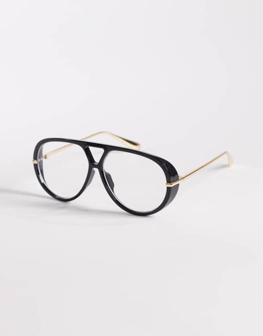 Kaiia exclusive oversized clear lens aviator glasses in black and gold