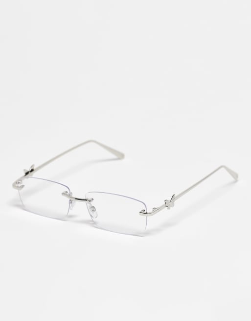 Kaiia exclusive rectangular rimless blue light lens butterfly detail glasses in silver