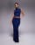 Kaiia exclusive slash neck sleeveless rib knit top and maxi skirt set in navy