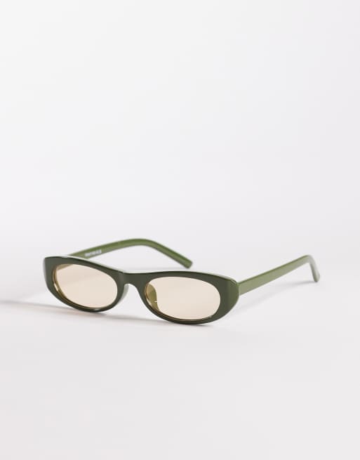 Kaiia exclusive slim oval frame tan lens sunglasses in khaki