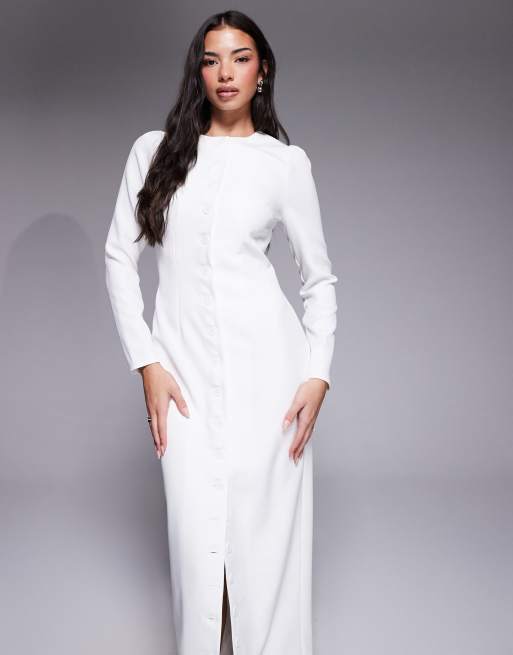 Kaiia exclusive tailored long sleeve button through maxi dress in white