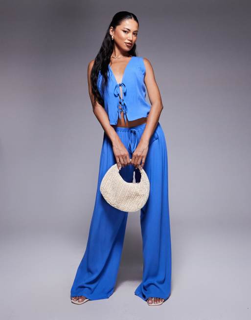 Kaiia sleeveless waistcoat top and wide leg pants set in cobalt blue