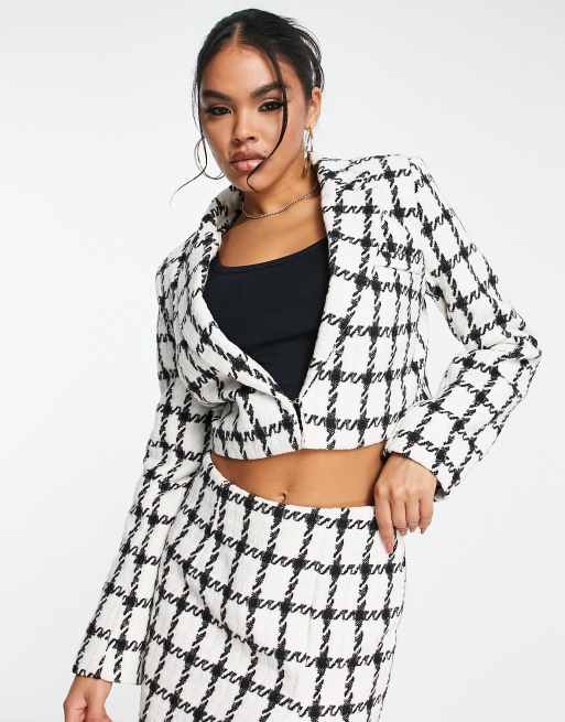 Kaiia textured cropped blazer in white check (part of a set)
