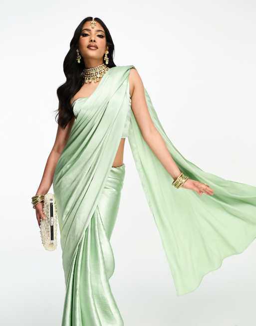 Kanya London Bridesmaid saree in sage green (part of a set)